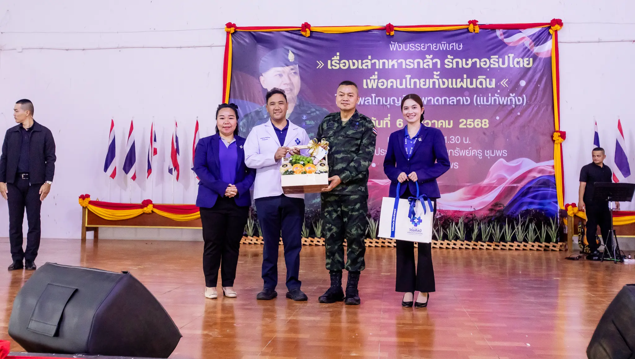 ภายหลังการเข้ารับบริการ แม่ทัพกุ้งได้เดินทางไปยัง หอประชุมสหกรณ์ออมทรัพย์ครูชุมพร เพื่อเป็นวิทยากรบรรยายพิเศษ ถ่ายทอดความรู้และประสบการณ์แก่พี่น้องประชาชนชาวชุมพร นับเป็นประโยชน์อย่างยิ่งต่อชุมชนในพื้นที่